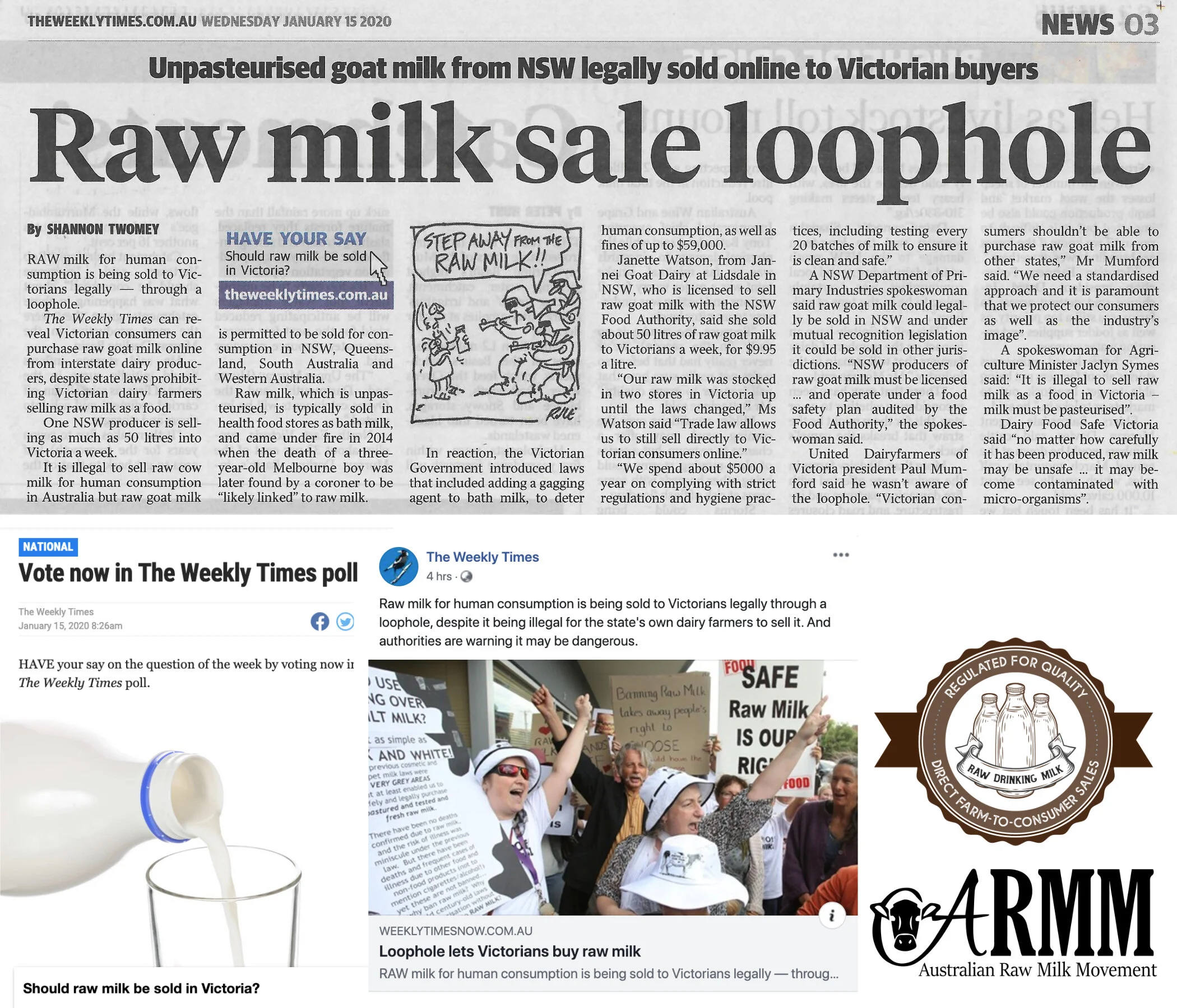 Weekly Times: Should raw milk be sold in Victoria? Poll - 15 Jan